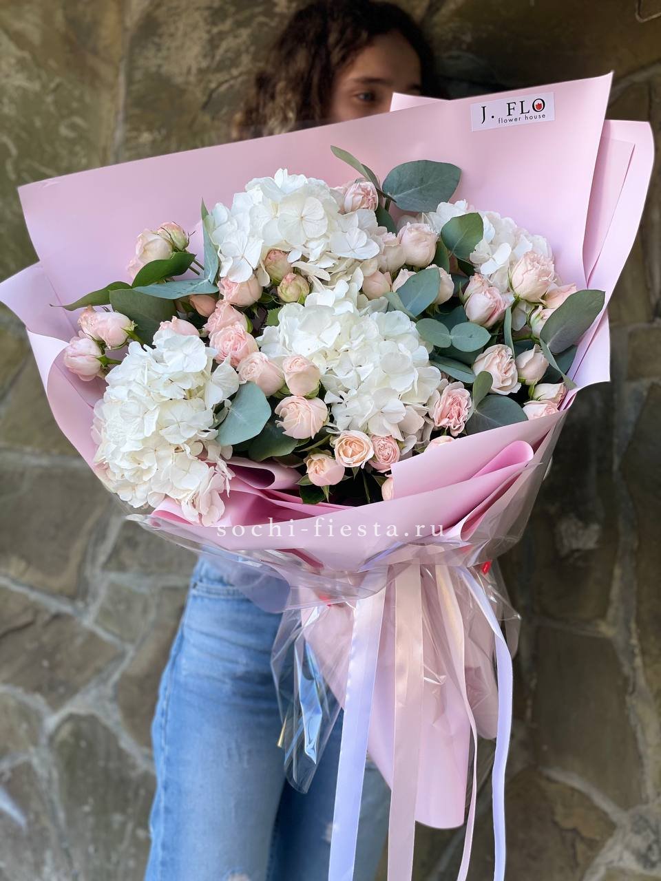 гортензия, бомбастик, эвкалипт, авторское оформление.