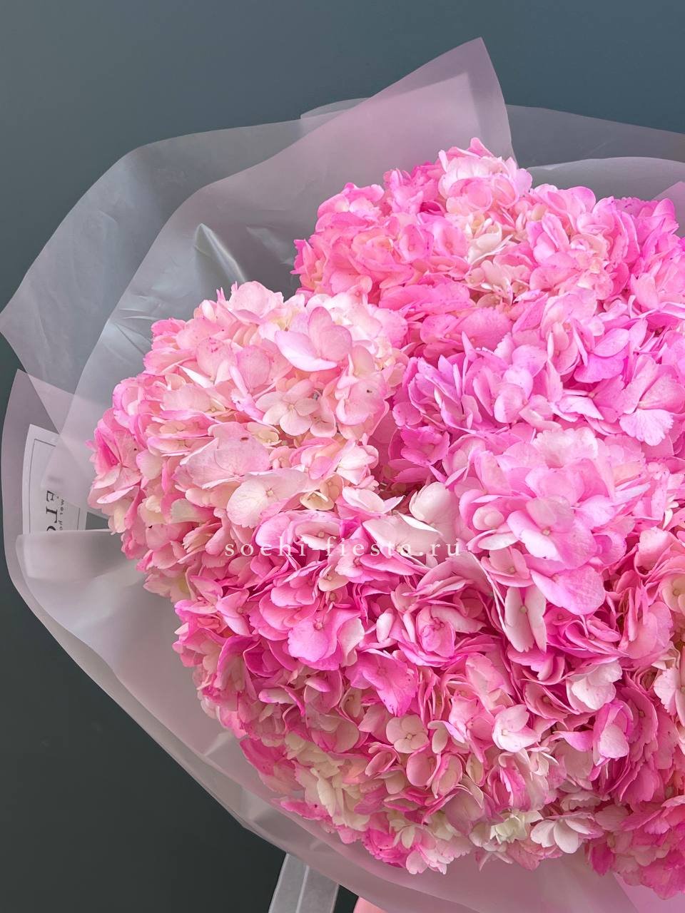 гортензия - 3 шт., лента, дизайнерская упаковка.