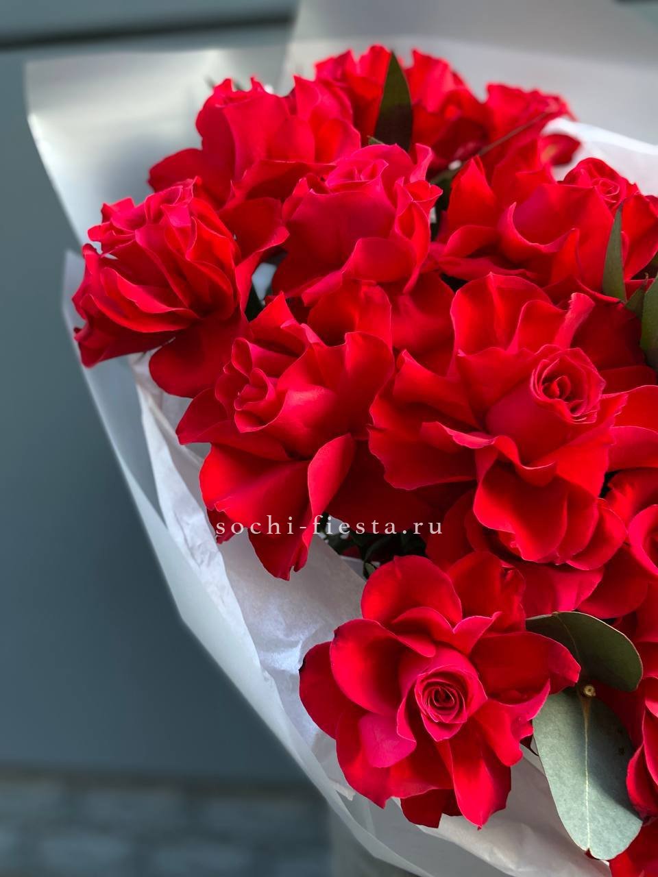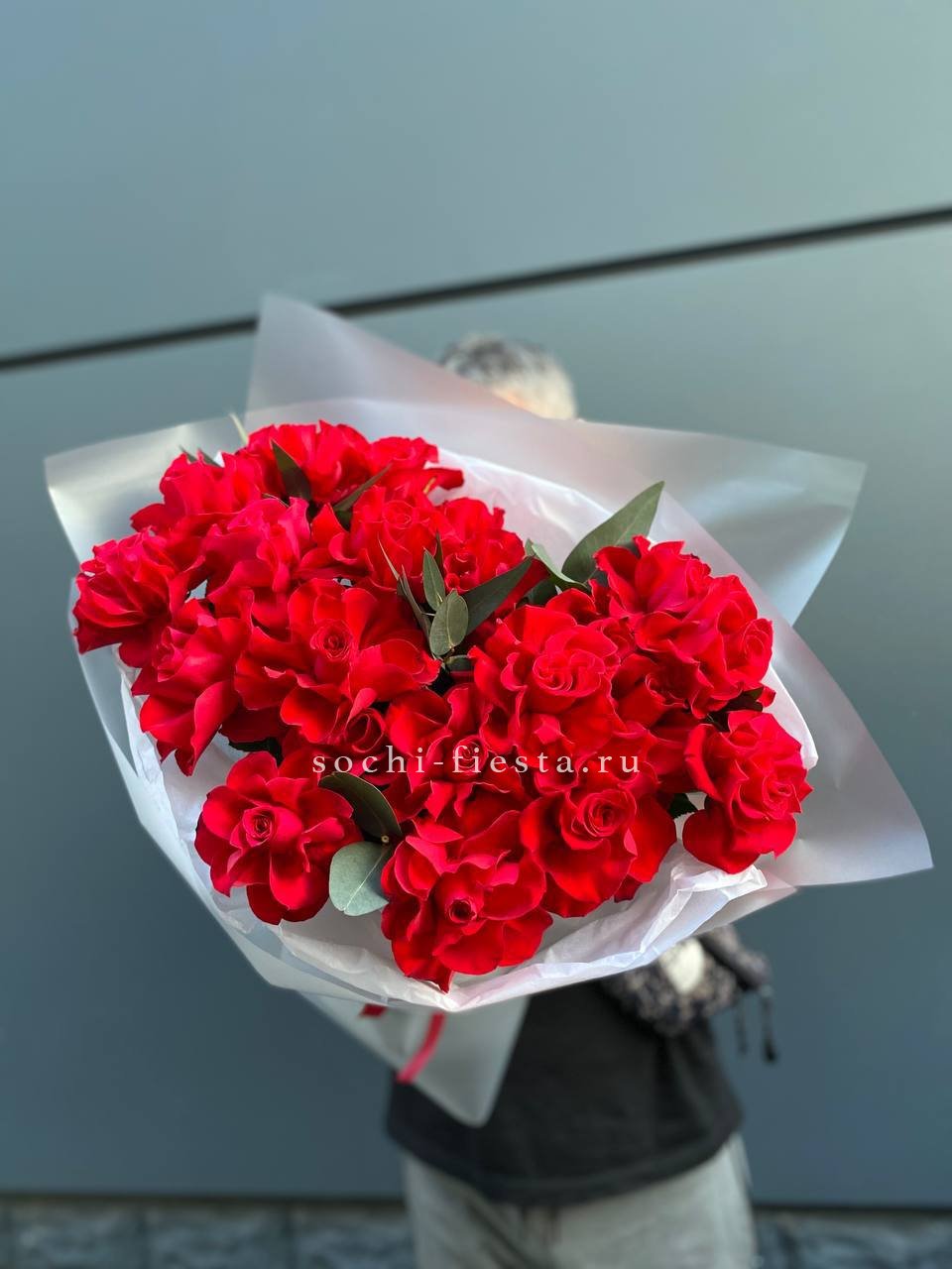 пионовидная роза, хамелациум (замена в несезон), эвкалипт, авторское оформление.
