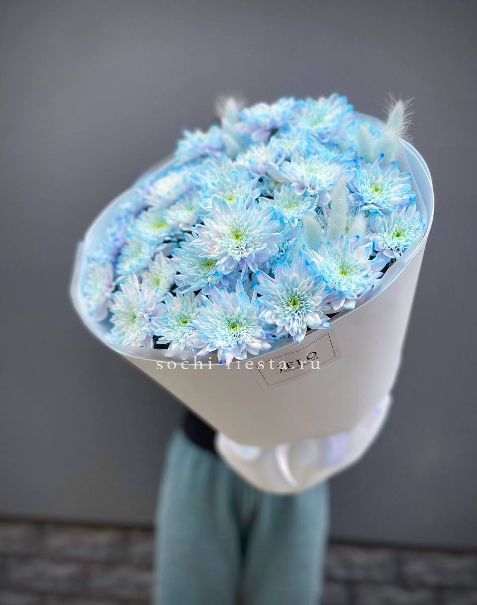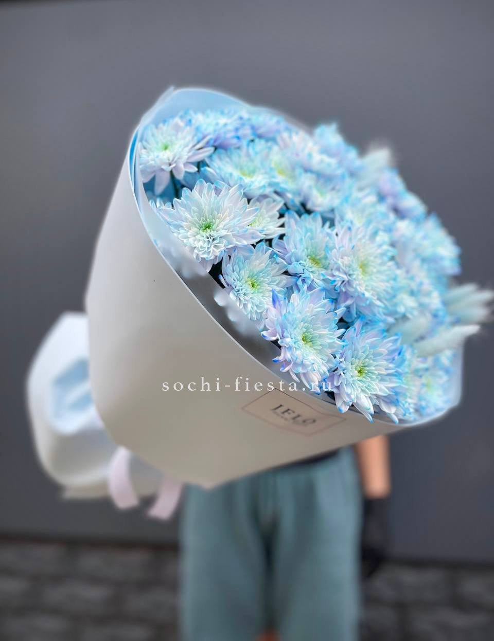 хризантема кустовая - 19 веток, лента, дизайнерская пленка.