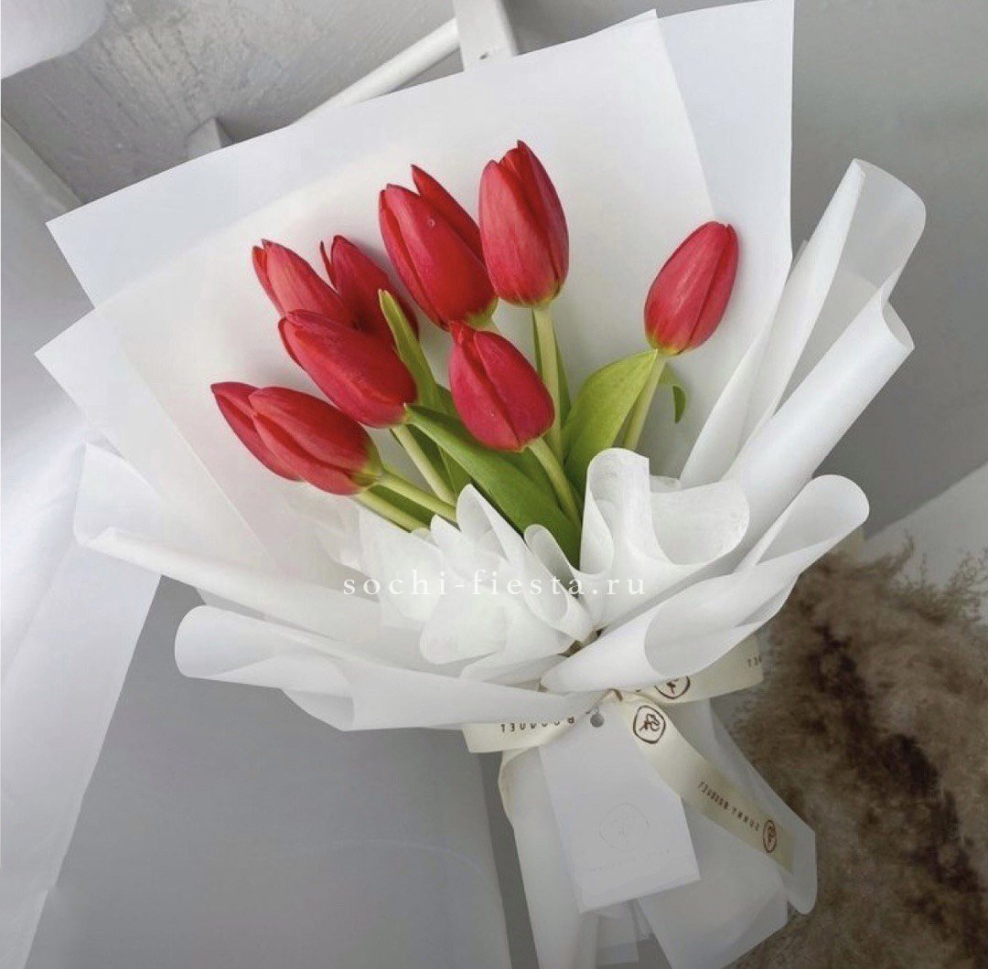 Тридцать семь тюльпанов создают яркое цветовое пятно в любом интерьере. Крафтовая упаковка оставляет композицию открытой и подчёркивает графику стеблей. Букет выглядит свободно и современно.