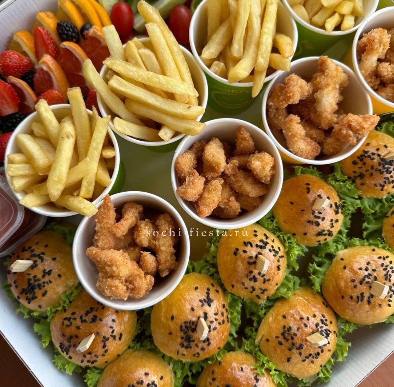 Шестнадцать брускетт с мясными и рыбными начинками. Говядина с вялеными томатами, паштет из печени, семга с огурцом и карбонад с черри раскрывают богатство вкусов в одной подаче.
