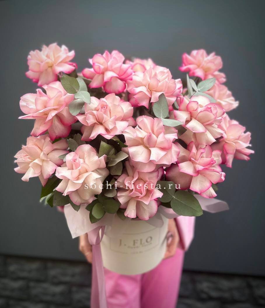 вывернутые розы Венди, цилиндр D20, эвкалипт, лента, упаковка.