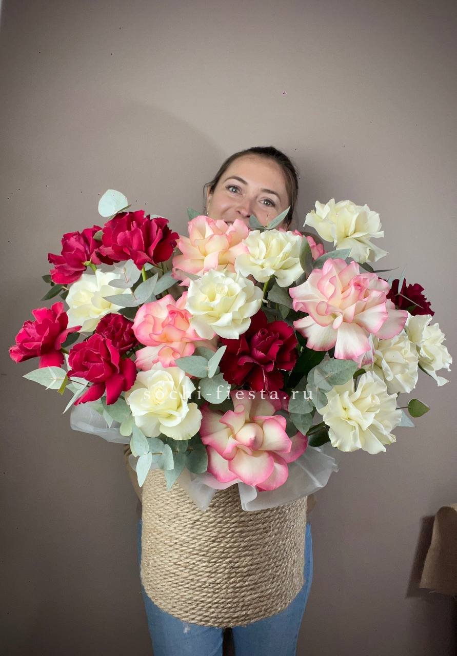 Для заказа товара "35 французских роз микс в джутовом боксе" с доставкой в Ангарске нажмите в корзину