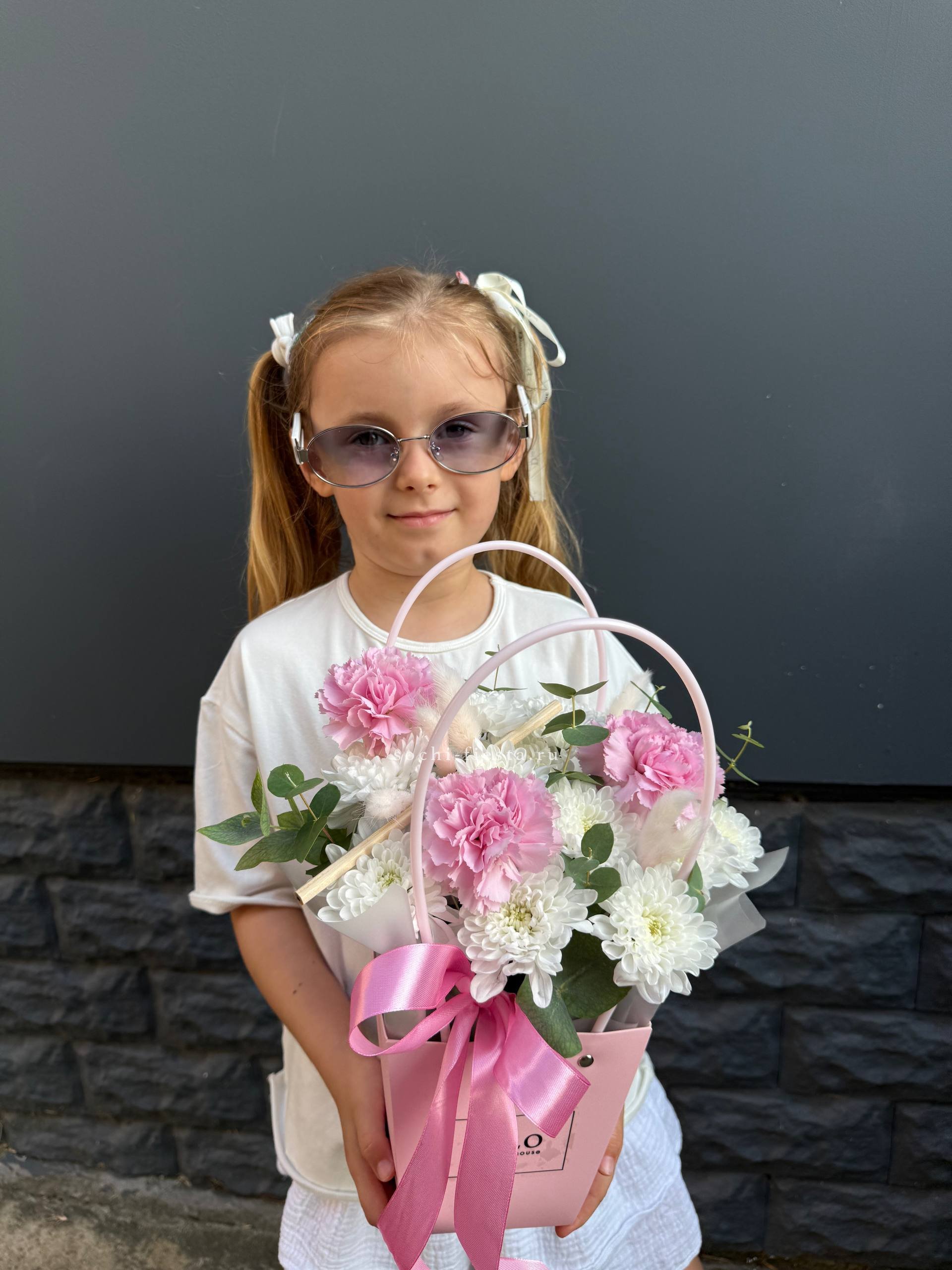 Для заказа товара "Сумочка из стойких хризантем и диантуса" с доставкой в Ангарске нажмите в корзину