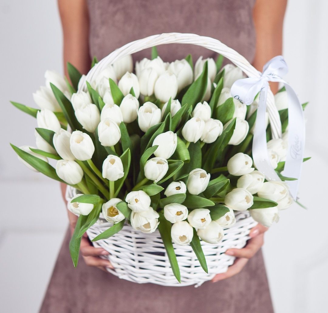 Корзина белых тюльпанов