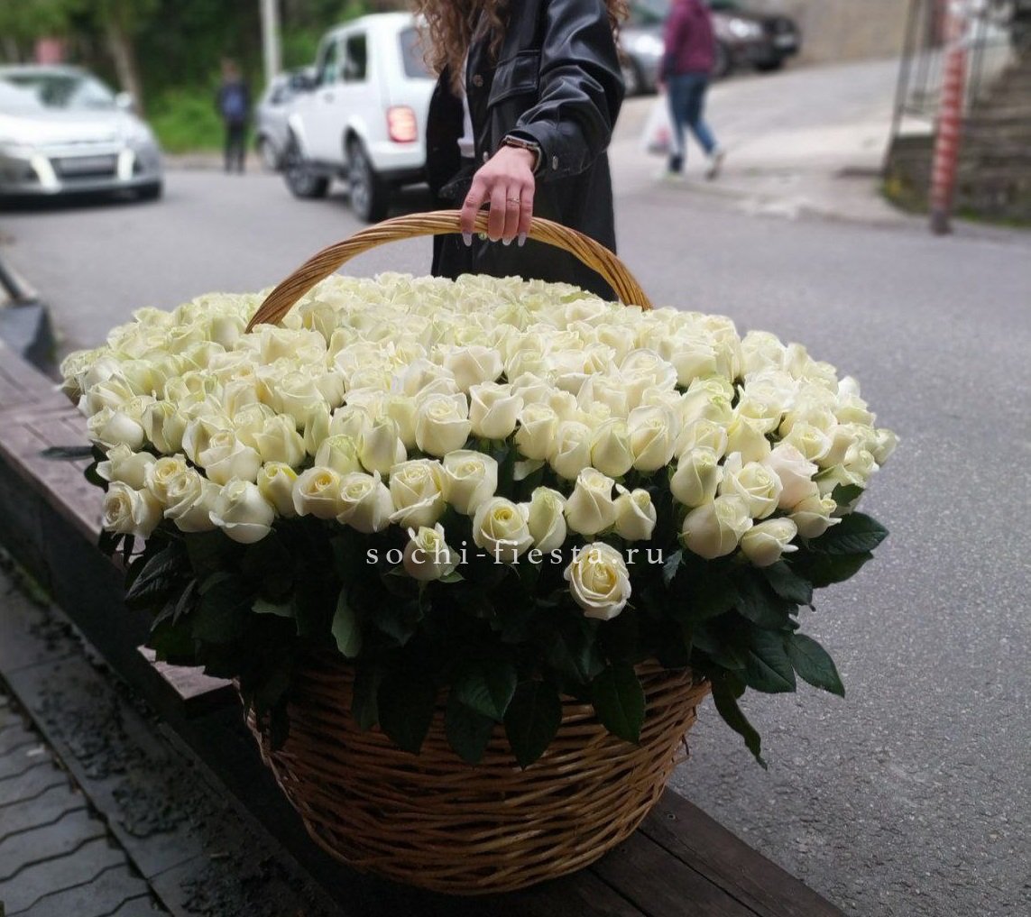 Пятьсот пятьдесят пять роз в корзине с персональной надписью — это целая инсталляция из живых цветов. Объём композиции впечатляет масштабом и создаёт незабываемое визуальное присутствие.