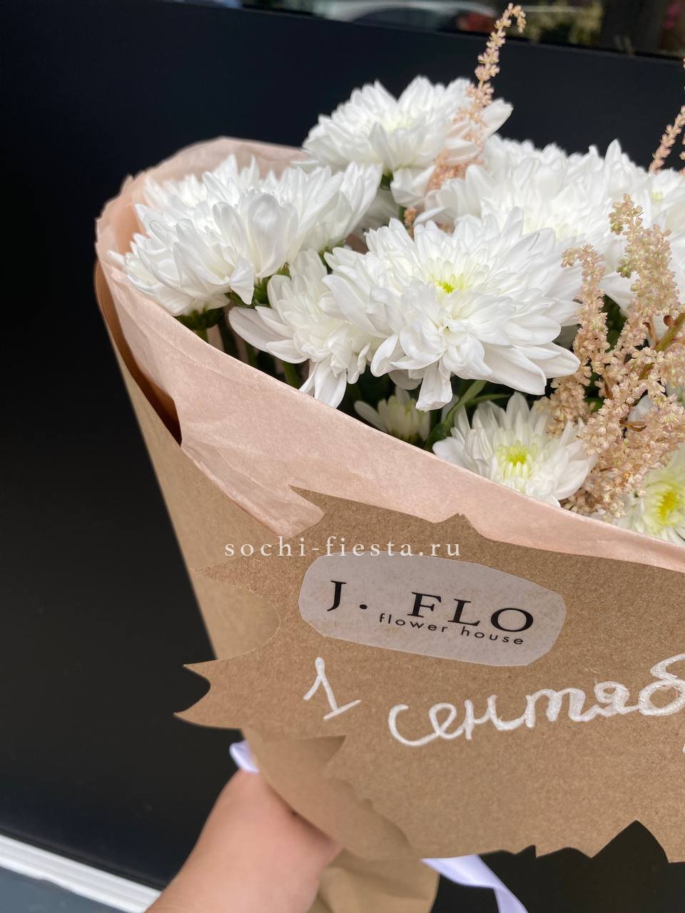 хризантемы 5 шт., астильба 2 шт., авторское оформление.