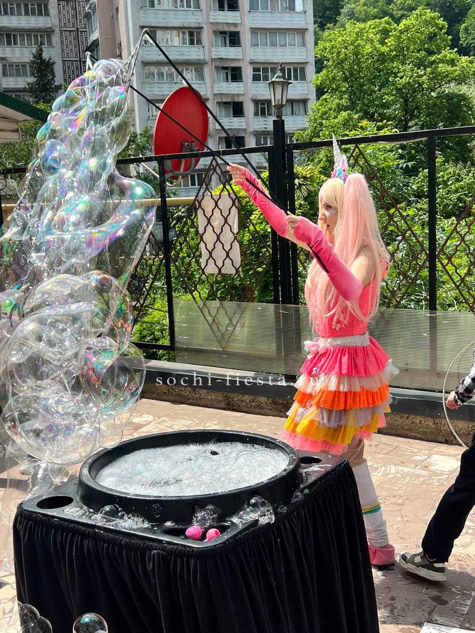 Шоу мыльных пузырей — яркое и захватывающее представление, в котором мастер создает огромные, разноцветные и необычные мыльные пузыри разного размера. В программе используются специальные техники и инструменты для формирования фантастических фигур, пузырей-гигантов и эффектных трюков. Это зрелищное шоу радует зрителей своей красотой, магией и атмосферой веселья, особенно популярное среди детей и семей.