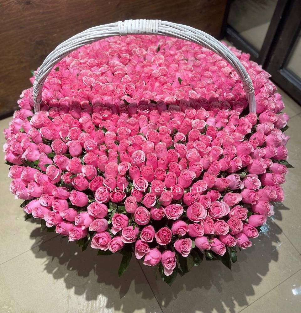 Пятьсот одна роза образует форму сердца из белых и красных бутонов. Плотная композиция в корзине удерживает симметрию и объём без дополнительных конструкций. Готовое решение для выражения чувств в масштабной форме.