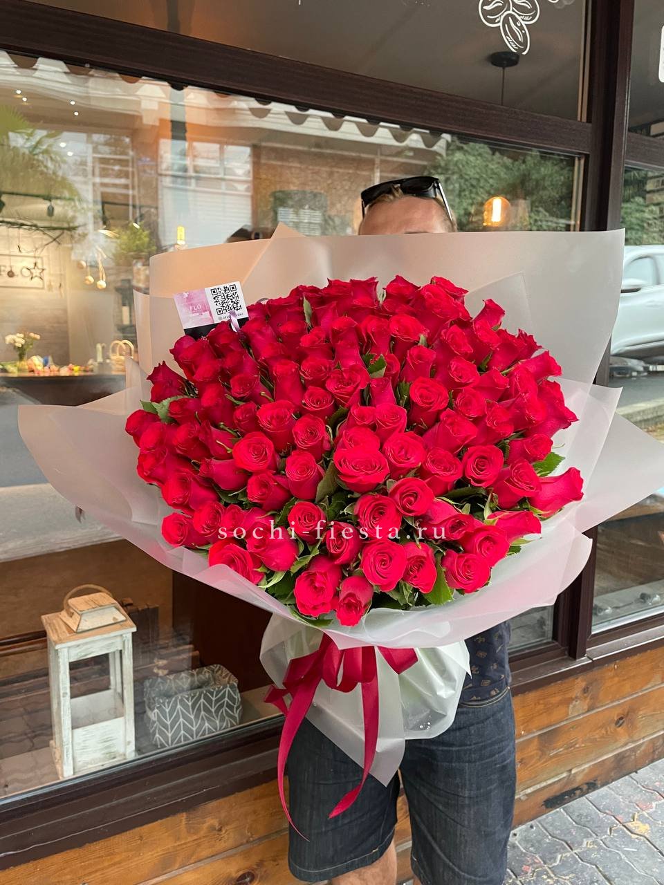 Семнадцать красных роз в обрамлении крафта или дизайнерской пленки — это лаконичная форма с выраженным характером. Букет удобен для вручения и долго радует свежестью.