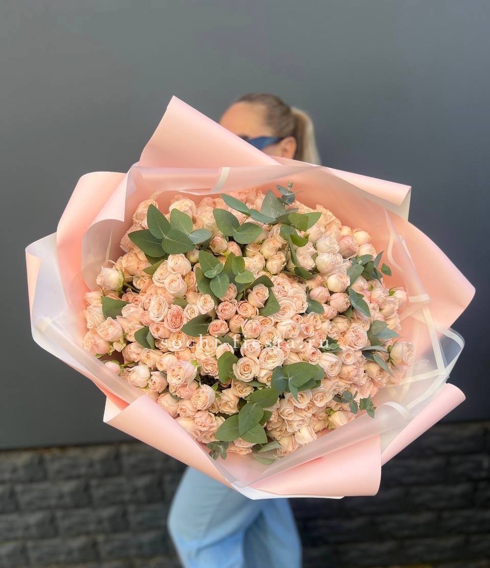 Кустовые розы Бомбастик в крафте