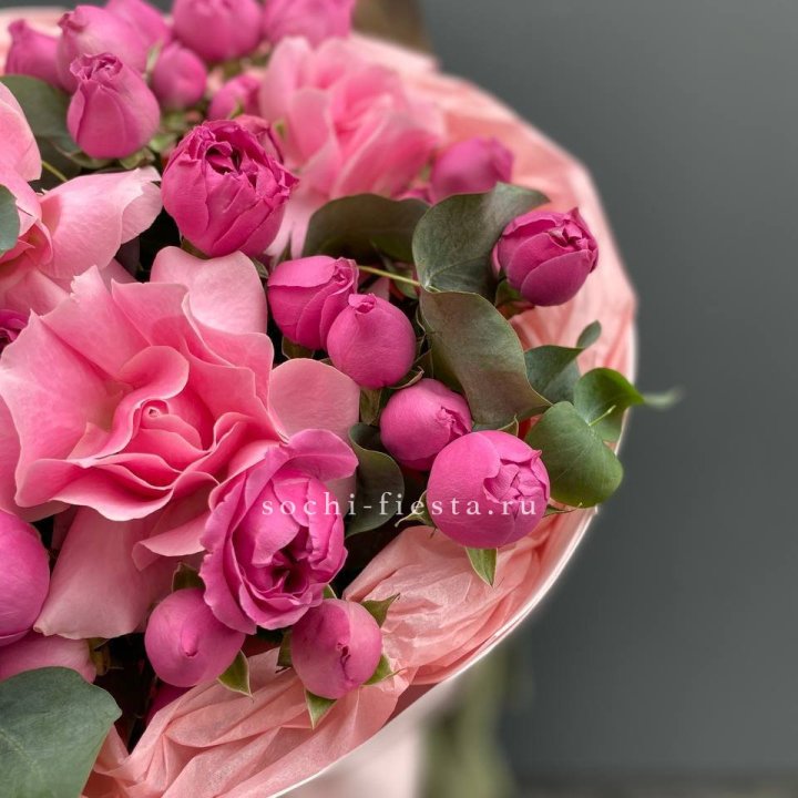 Зима и лето в Ангарске — розы и хризантемы как основа. Эти виды стабильны в поставках круглый год. Флорист дополняет их сезонными акцентами: хвойные ветви зимой, открытая эустома летом. Сборный букет в любое время года выглядит живым и актуальным.