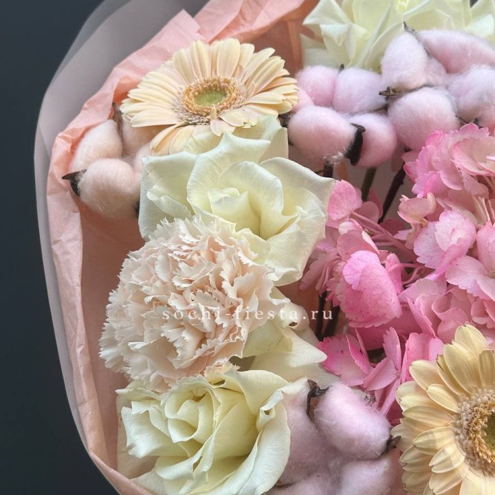 Зима и лето в Ангарске — розы и хризантемы как основа. Эти виды стабильны в поставках круглый год. Флорист дополняет их сезонными акцентами: хвойные ветви зимой, открытая эустома летом. Сборный букет в любое время года выглядит живым и актуальным.